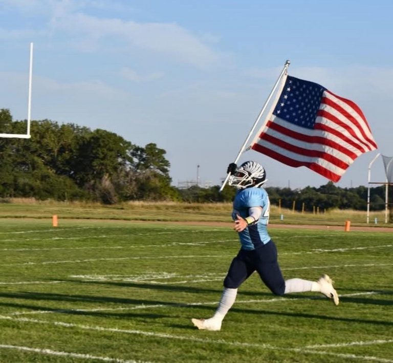 Payton Becker runs the flag for Skyline High School. He is the lone senior player this year for the Thunderbirds.Photo by Chelsea Brenner